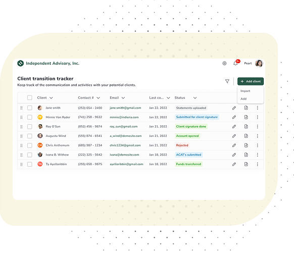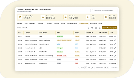 Our comprehensive dashboard empowers you to elevate client relations through actionable intelligence on books of business. From tracking asset growth to handling service requests, our solution ensures that you have everything you need to provide unparalleled service and insight, and foster lasting client trust.