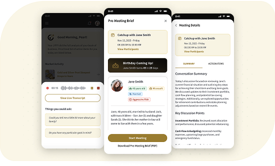 Wealth managers often lose valuable hours preparing for and following up on client meetings. Our solution automates preparation, live note capture, and post-meeting wrap-up, seamlessly integrating with CRMs. It helps improve productivity, facilitates compliance-ready documentation, and ensures more time to focus on building meaningful client relationships.