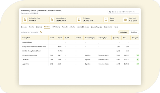 Access real-time portfolio data to track investment positions, performance, and growth.