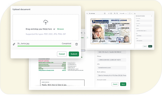 Harness the power of AI for document upload and extraction, streamlining data capture and enhancing accuracy during the onboarding process.