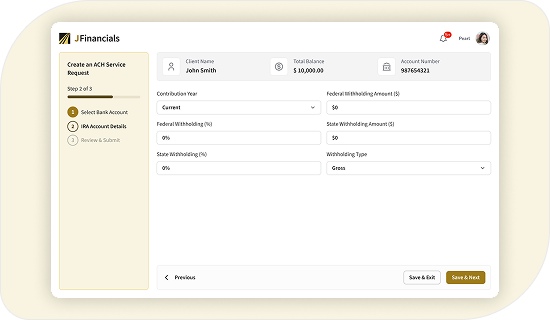 Automates and accelerates IRA contributions and distributions with secure, seamless ACH transfers, ensuring compliance and efficiency in fund movements.